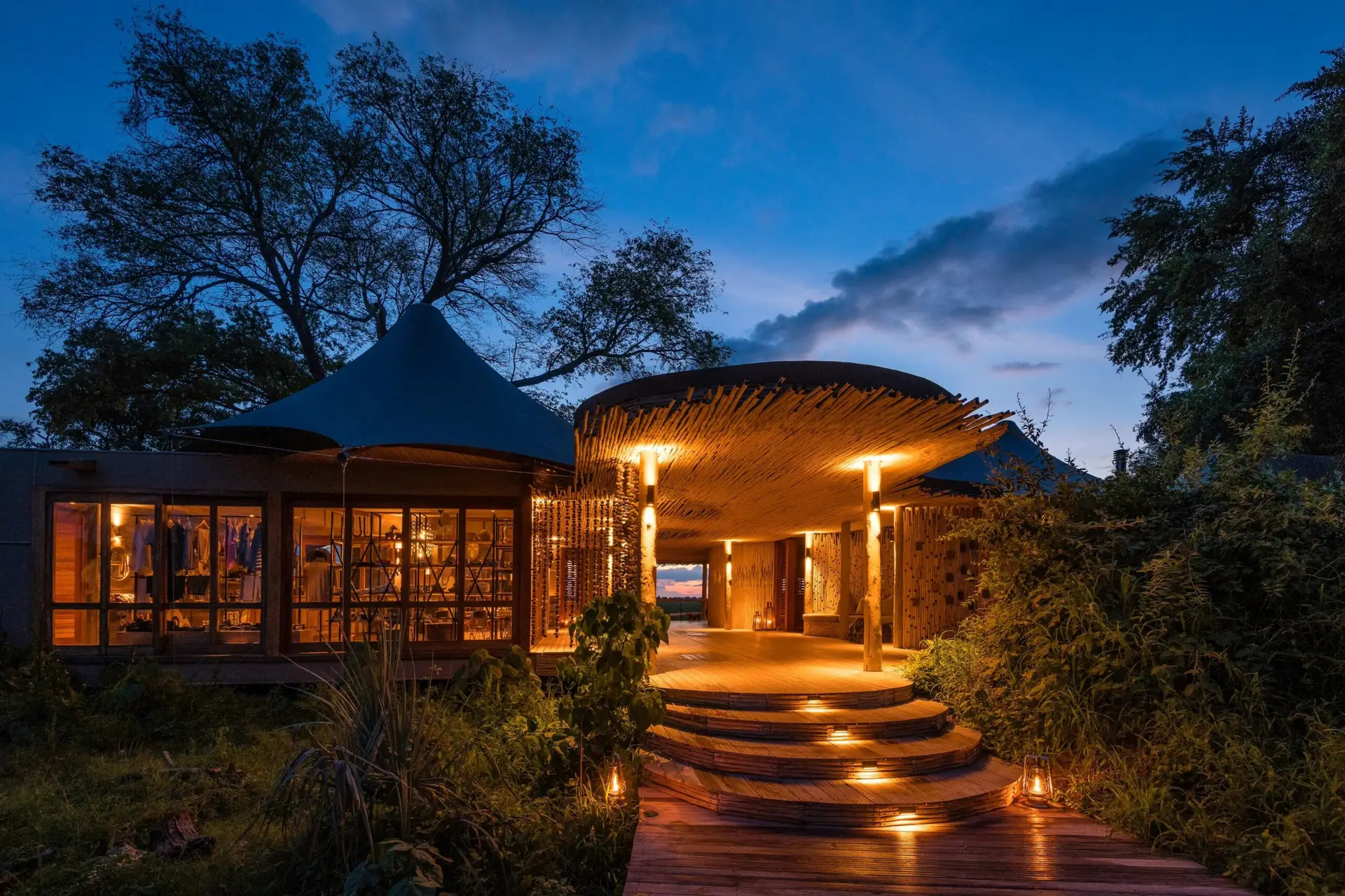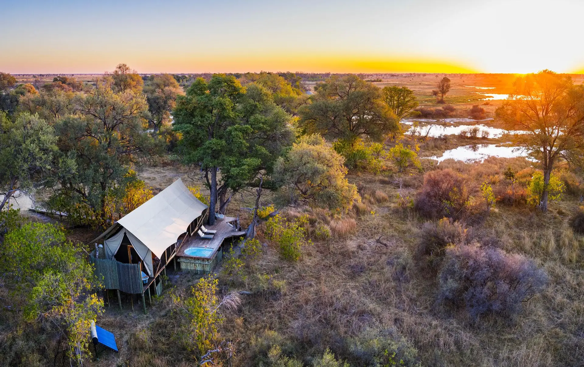 Operated by Wilderness, Mombo is built on a model where tourism funds conservation. The lodge runs primarily on solar energy, dramatically reducing reliance on fossil fuels in this remote ecosystem. Its elevated design minimizes impact on the floodplain below, allowing wildlife to move naturally beneath the structure.
